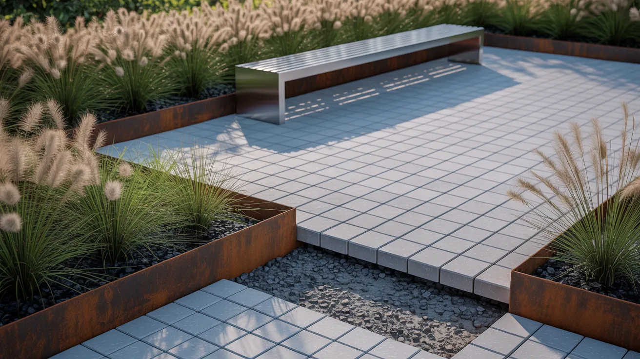 We recommend permeable pavers at locations where traffic and runoff intersect, opting for interlocking shapes, polymeric joints, and open-graded bases to manage unexpected Gulf Coast storms. For visual definition and durability, we incorporate corten steelwork—retention edges, seat walls, and planters—previously treated to control patina and safeguard adjacent finishes.